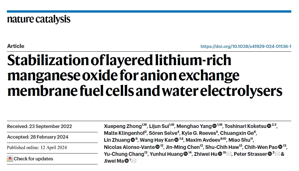 燃料電池是氫能的重要應(yīng)用場景。目前,高性能的燃料電池主要采用高載量的鉑族金屬作為催化劑,導(dǎo)致成本相對較高,從而限制了其大規(guī)模應(yīng)用。材料科學(xué)與工程學(xué)院馬吉偉團隊提出了一種全新的解決方案,通過優(yōu)化富鋰錳基氧化物的電子結(jié)構(gòu)和性能,來替代資源稀缺且昂貴的鉑族催化劑。該研究成果在線發(fā)表于《自然·催化》(Nature Catalysis)。
