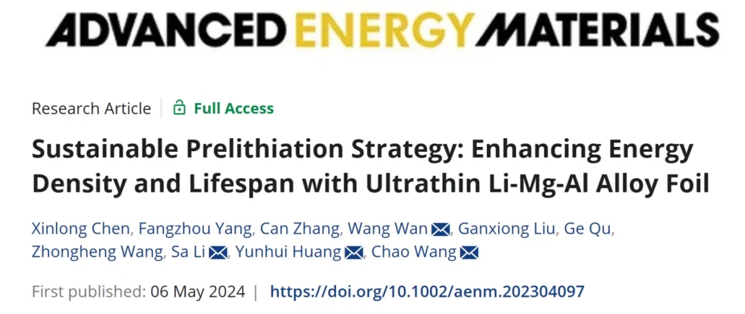材料科學(xué)與工程學(xué)院王超團隊基于儲能型磷酸鐵鋰石墨電池體系,使用自制超薄鋰鎂鋁合金實現(xiàn)無損高效的接觸預(yù)鋰化,并提出了能夠不斷補充電池循環(huán)過程中鋰損失的持續(xù)補鋰設(shè)計原則?;诖朔椒ǎ?000圈后電池容量提升了32.4%,電池預(yù)期循環(huán)壽命能延長至對照組的3倍。研究成果發(fā)表于《先進能源材料》(Advanced Energy Materials)。