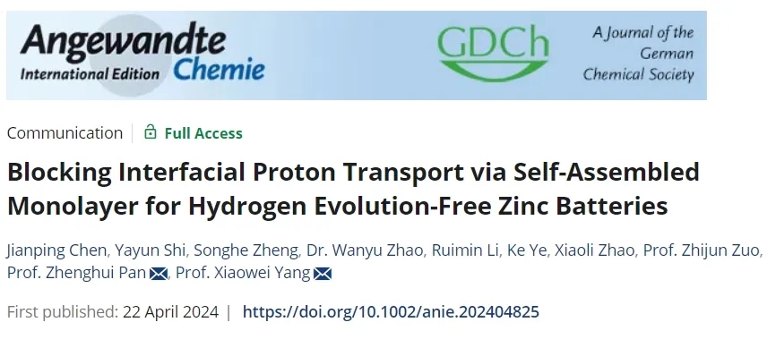 水系鋅離子電池是有前途的下一代儲能設(shè)備,但存在析氫反應(yīng)(HER)和鋅負(fù)極表面復(fù)雜的副反應(yīng)等問題。材料科學(xué)與工程學(xué)院新能源材料化工團隊(潘爭輝、楊曉偉)通過在Ti3C2Tx(MXene)基底上錨定離子液體陽離子(BMIM+)構(gòu)建了自組裝的單分子層(SAM),以實現(xiàn)無HER的穩(wěn)定鋅負(fù)極。相關(guān)研究成果發(fā)表于《德國應(yīng)用化學(xué)》(Angewandte Chemie International Edition)。