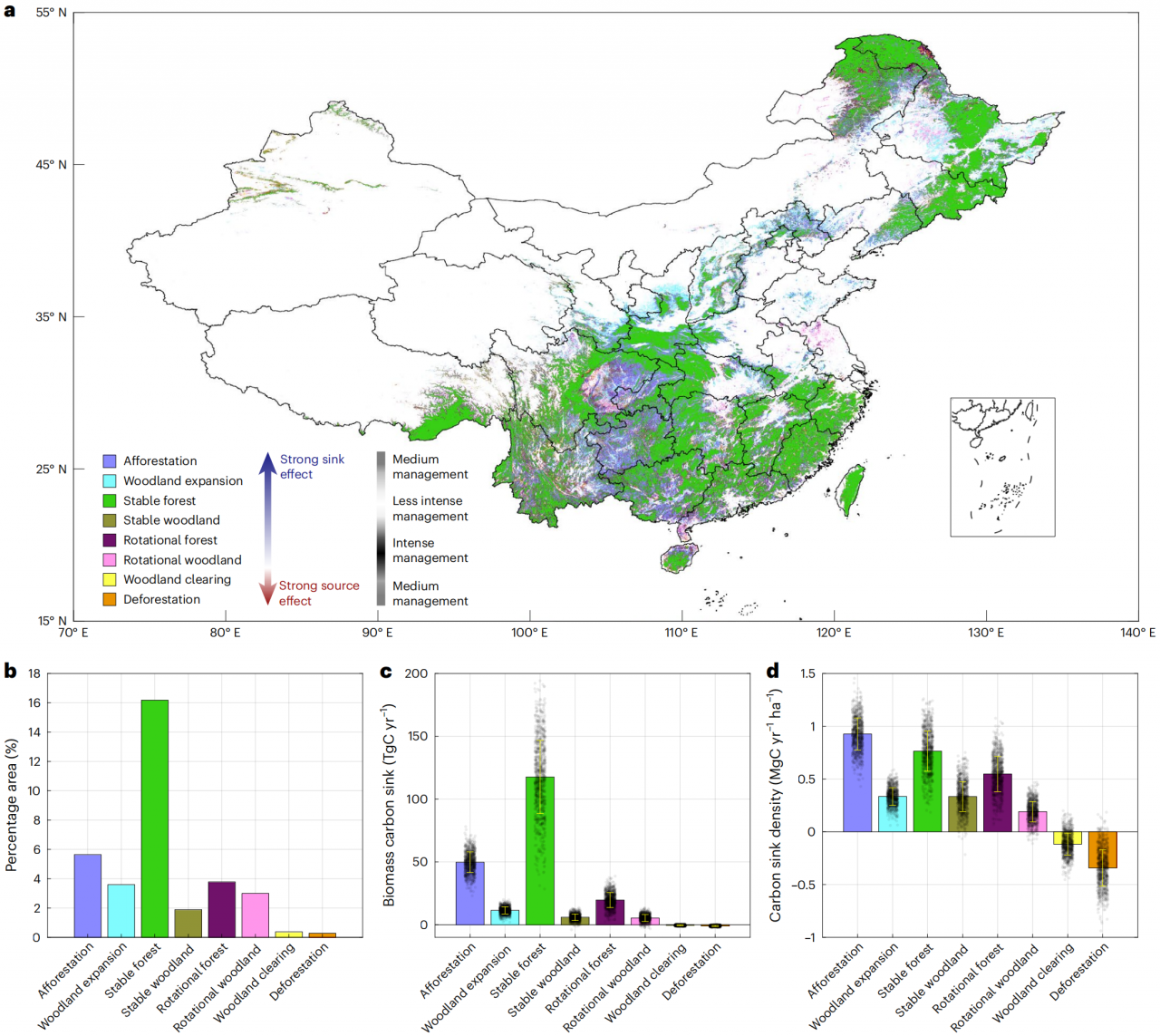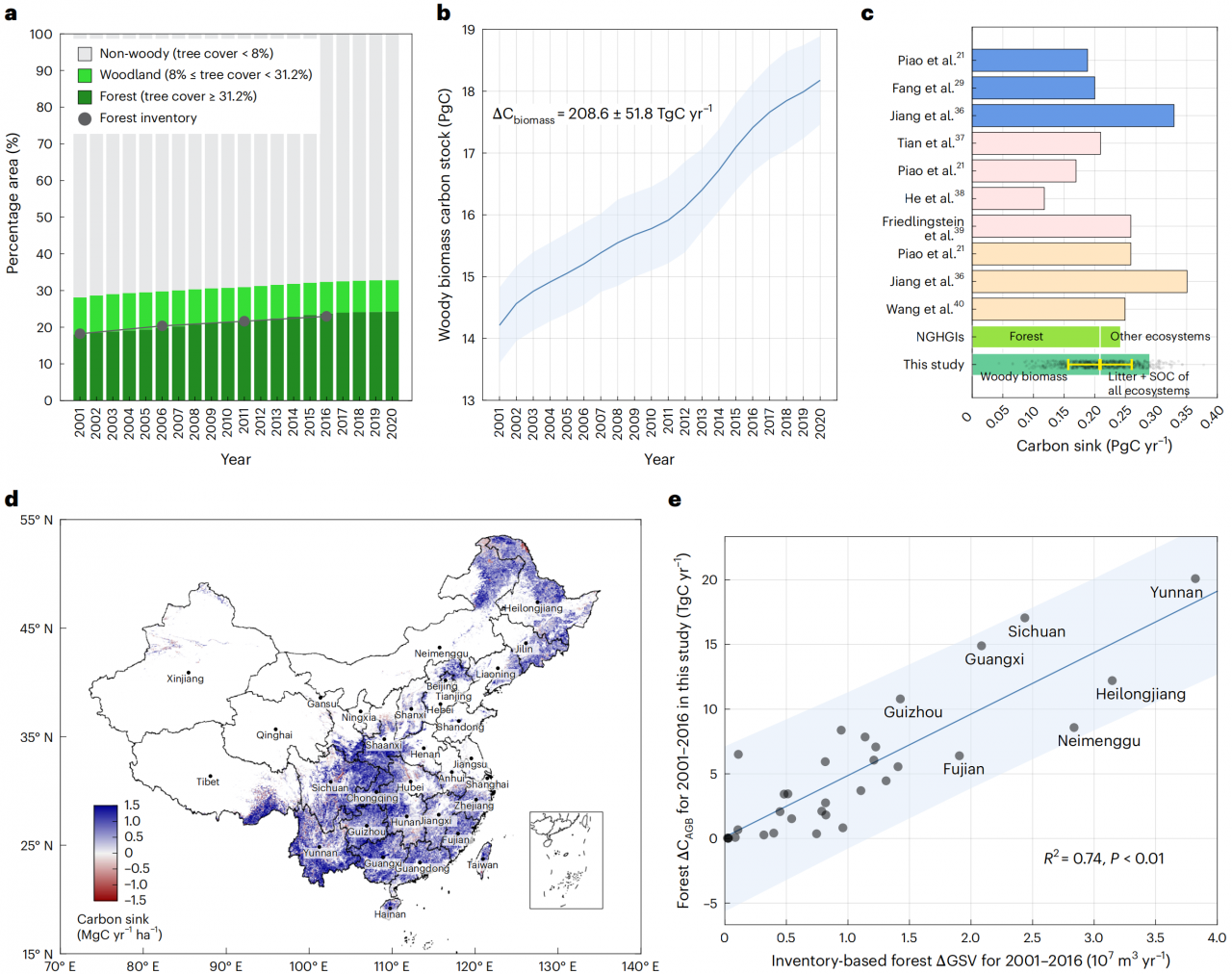 論文信息:Liao, Z., Yue, C., He, B. et al. Growing biomass carbon stock in China driven by expansion and conservation of woody areas. Nat. Geosci. (2024). https://doi.org/10.1038/s41561-024-01569-0