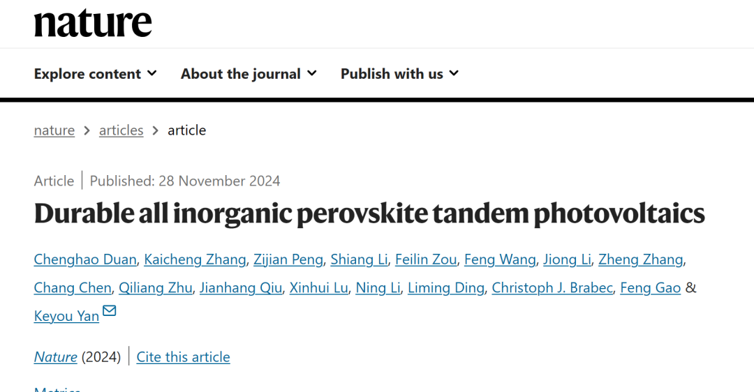 華南理工大學(xué)嚴克友教授團隊針對鈣鈦礦電池光熱穩(wěn)定性差的行業(yè)難題,利用綠色配體演變策略,調(diào)控全無機窄帶隙鈣鈦礦薄膜的成核結(jié)晶,成功制備了全球首個2端全無機鈣鈦礦疊層電池,85 ℃光熱穩(wěn)定性老化測試表現(xiàn)良好。相關(guān)成果以“Durable all Inorganic perovskite tandem photovoltaics”為題發(fā)表在Nature上。