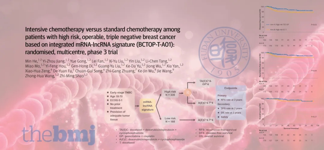 首次前瞻性驗證三陰性乳腺癌多基因模型指導精準化療和預測患者預后的價值。三陰性乳腺癌異質性極高,但目前缺乏針對三陰性乳腺癌的特異模型來指導更精準的治療策略。研究團隊通過開展一項名為“BCTOP-T-A01”的全國多中心臨床研究,證實研究團隊前期構建的多基因模型可以預測三陰性乳腺癌患者復發(fā)風險,多基因模型指導的“蒽環(huán)紫杉”序貫“吉西他濱”聯(lián)合“卡鉑”的精準化療方案能顯著提升高?;颊呱媛食^10%,且該方案安全性可控,患者無嚴重不良反應。該成果于2024年發(fā)表在The BMJ雜志上,并發(fā)表同期編者述評。
