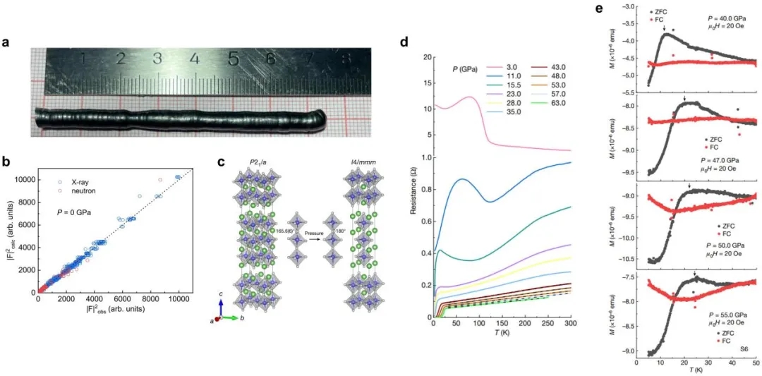 在三層鎳氧化物單晶中發(fā)現(xiàn)壓力誘導的塊體超導電性,為高溫超導研究提供了新的視角和平臺。尋找非銅基高溫超導體對揭示超導機理及推動應用至關重要。研究團隊成功合成了幾乎無氧缺陷的三層鎳氧化物單晶,發(fā)現(xiàn)其在壓力下呈現(xiàn)30K超導電性,超導體積分數(shù)超過86%,首次在鎳氧化物中實現(xiàn)了塊體超導電性,并揭示了其獨特的層間耦合和奇異金屬行為,為高溫超導研究提供了全新的視角和平臺。成果于2024年7月在Nature上發(fā)表。Nature以“超導探索領域進一步拓寬”為題亮點報道。