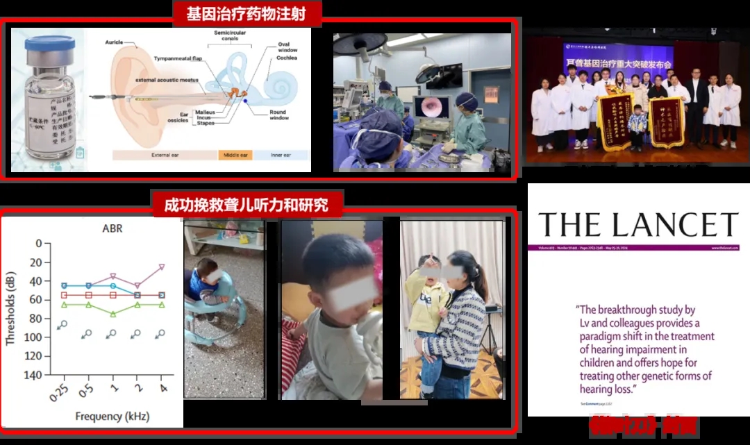 國際首個先天性耳聾基因治療恢復聾啞患者聽力和言語,為耳聾治療提供范式轉變。先天性耳聾患者高達2600萬,臨床尚無治療藥物。研究團隊研發(fā)出OTOF耳聾基因治療藥物,主導全球首個先天性耳聾基因治療臨床試驗,恢復了聾啞患者的聽力和言語;還開發(fā)出長期恢復遺傳性耳聾模型聽力的基因編輯治療新策略,為更多先天性疾病基因治療提供借鑒。標志著我國在聽覺治療領域達國際先進水平。2024年發(fā)表于The Lancet、Nature Medicine、Nature Biomedical Engineering,且被Lancet選為封面,國際同行評價“開啟了耳聾基因治療新時代”。