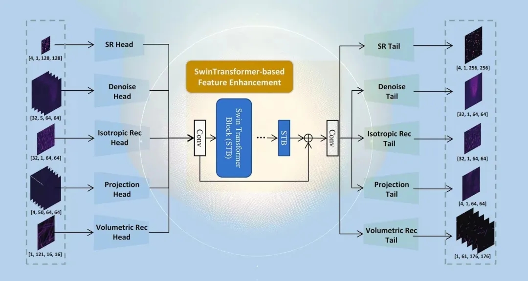 首個統(tǒng)一的熒光顯微增強基礎模型,多維度突破顯微成像極限。超分辨率顯微鏡是對活細胞進行微納米級觀察的關鍵科學儀器。研究團隊利用人工智能技術構建了國際上首個統(tǒng)一的熒光顯微鏡圖像增強基礎模型(UniFMIR),從多個維度突破了超分辨率顯微成像極限。該技術能夠助力國產顯微設備實現(xiàn)智能化,打破國外高端顯微設備壟斷。成果2024年發(fā)表于Nature Methods,并獲得2024年全國顛覆性技術創(chuàng)新大賽優(yōu)勝獎。